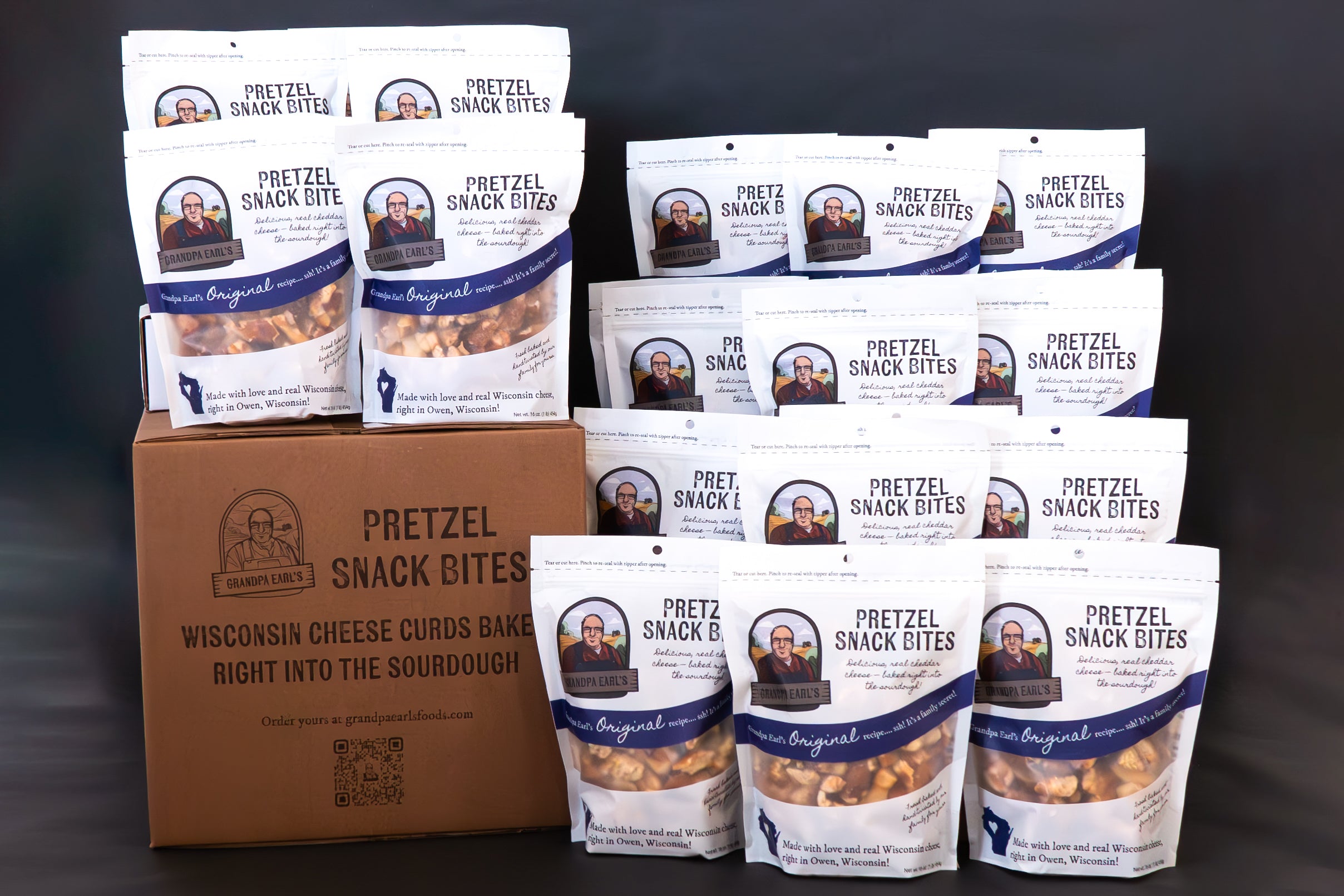 Inspired by the deliciousness of Wisconsin cheddar cheese curds, Grandpa Earl and family set out to create a sourdough pretzel snack bite with a deliciously addicting, one-of-a-kind flavor. Our cheddar-infused sourdough has a subtle yet distinctive taste, and it's a perfectly satisfying snack to enjoy any time, anywhere.
