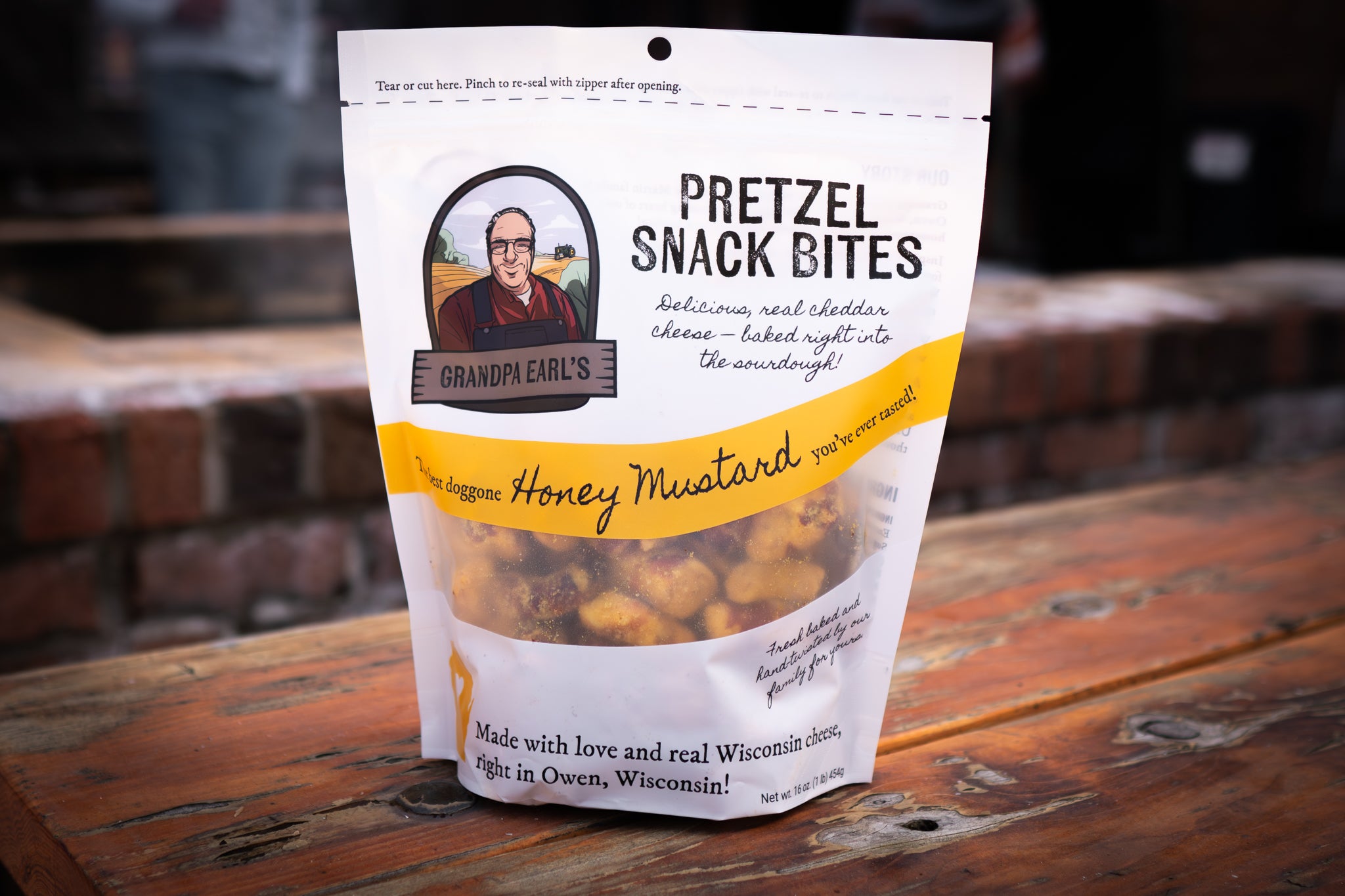Inspired by the deliciousness of Wisconsin cheddar cheese curds, Grandpa Earl and family set out to create a sourdough pretzel snack bite with a deliciously addicting, one-of-a-kind flavor. Our cheddar-infused sourdough has a subtle yet distinctive taste, and it's a perfectly satisfying snack to enjoy any time, anywhere.